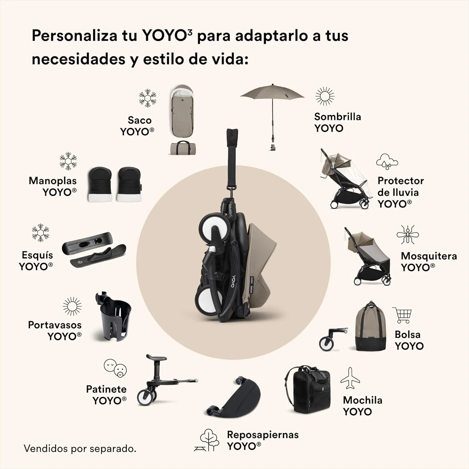 Con una amplia gama de accesorios y un diseño pensado para la ciudad y más allá, el YOYO³ es el coche para bebés que se adapta a cada etapa, cada destino y cada aventura.