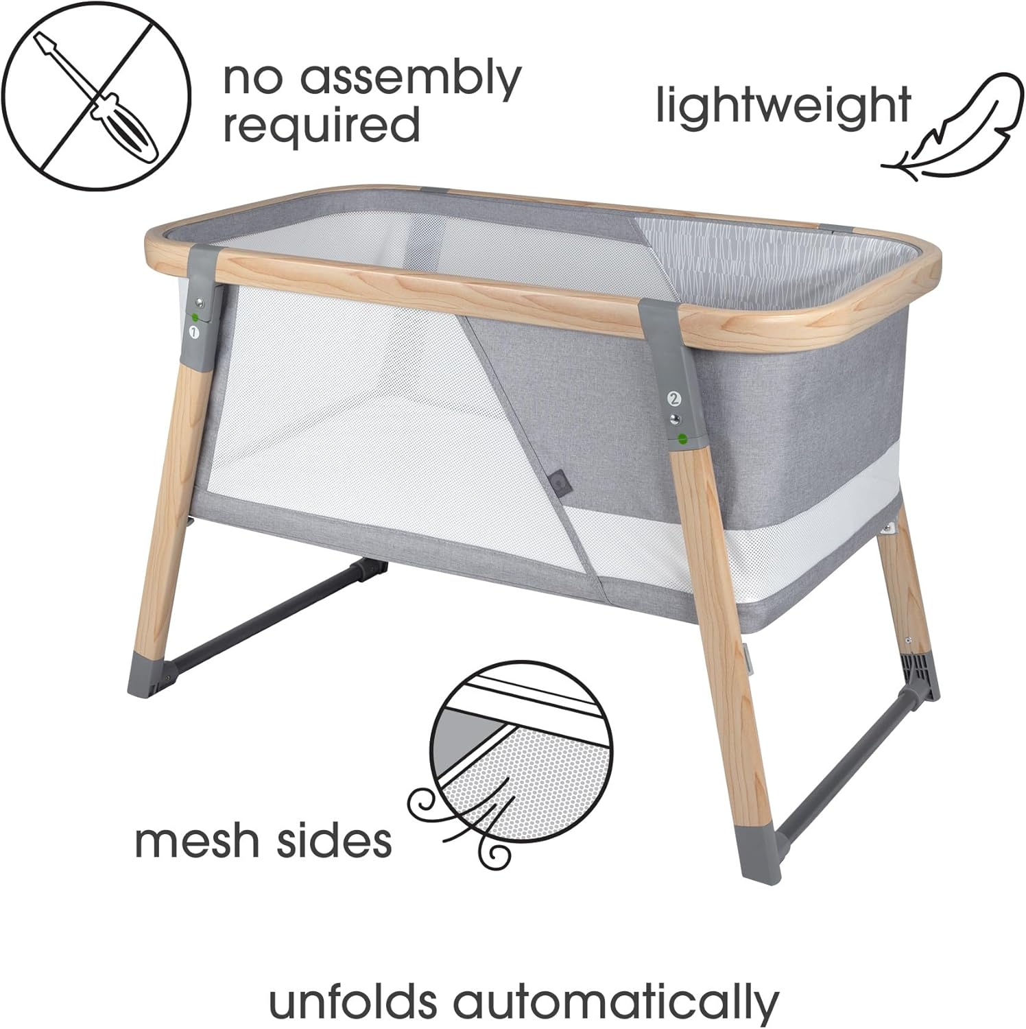Comodidad y seguridad: El diseño de la cuna, ganador del premio JPMA Innovation Award, prioriza la seguridad. Incluye una pared de malla para una mejor circulación del aire y paneles de tela para reducir las distracciones, permitiéndote elegir la mejor opción para tu bebé.