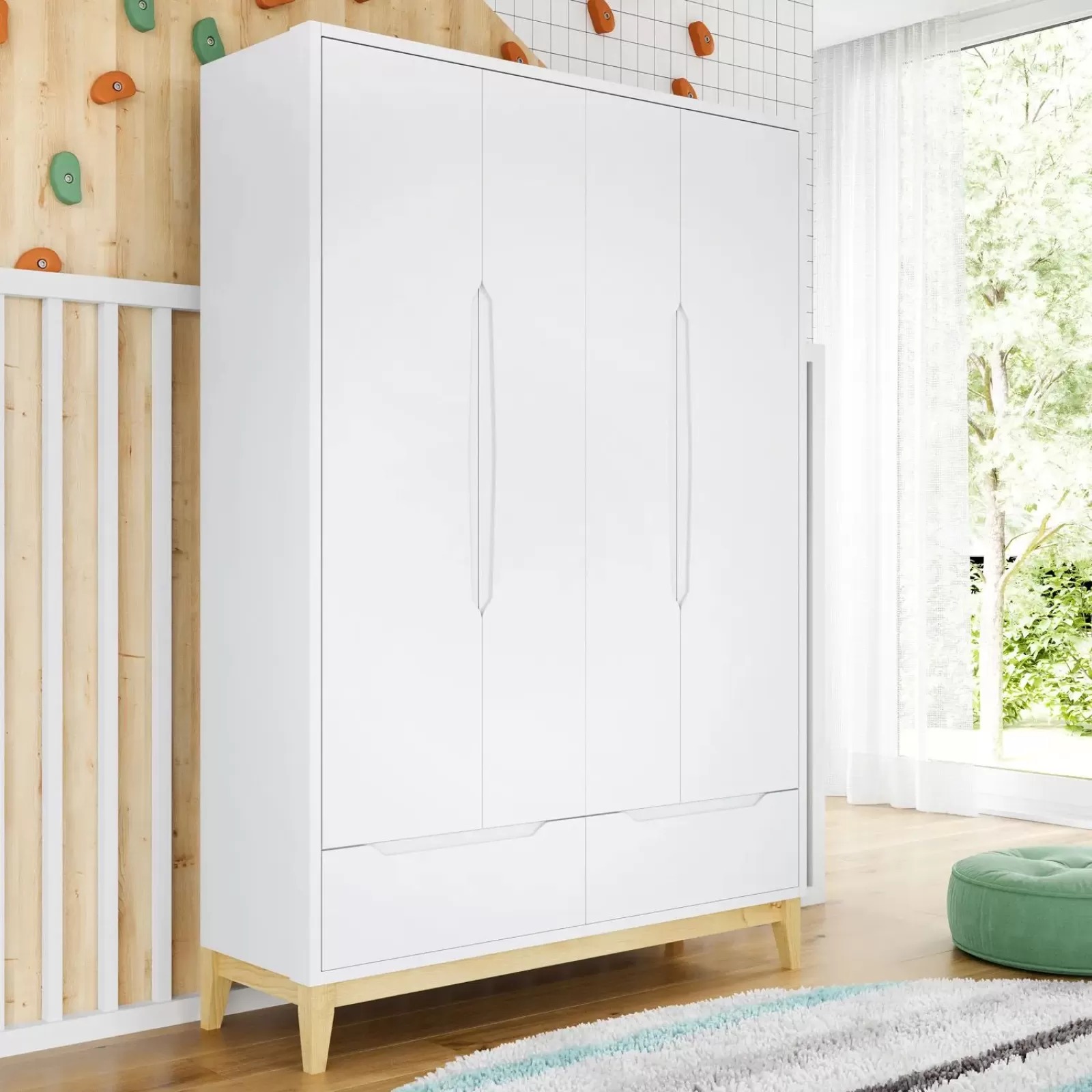 El Armario Infantil Retro Amor Perfeito es un producto desarrollado para personas que valoran la calidad y el acabado. Se trata de un producto de primera calidad elaborado con MDF y madera maciza reforestada. Además, este producto se somete a un proceso de pintura UV no tóxico que garantiza un acabado fino y duradero. Otro punto importante son los bordes, que son ligeramente redondeados, evitando así posibles accidentes.