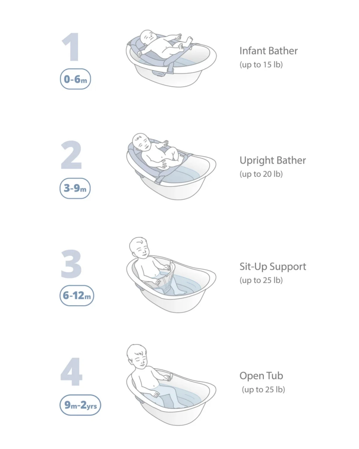 Bañera abierta (9 meses – 2 años): Hasta 11,5 kg