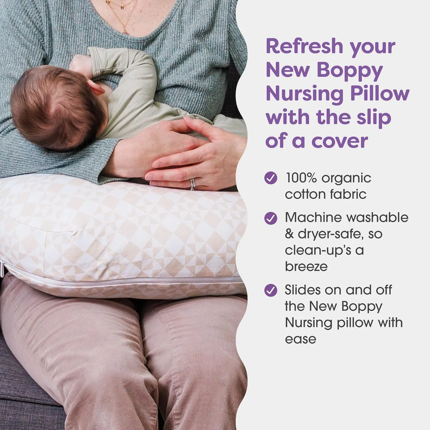Pura y simple: esta funda Boppy cuenta con tela de algodón 100% orgánico para una comodidad suave que es agradable para la piel del bebé